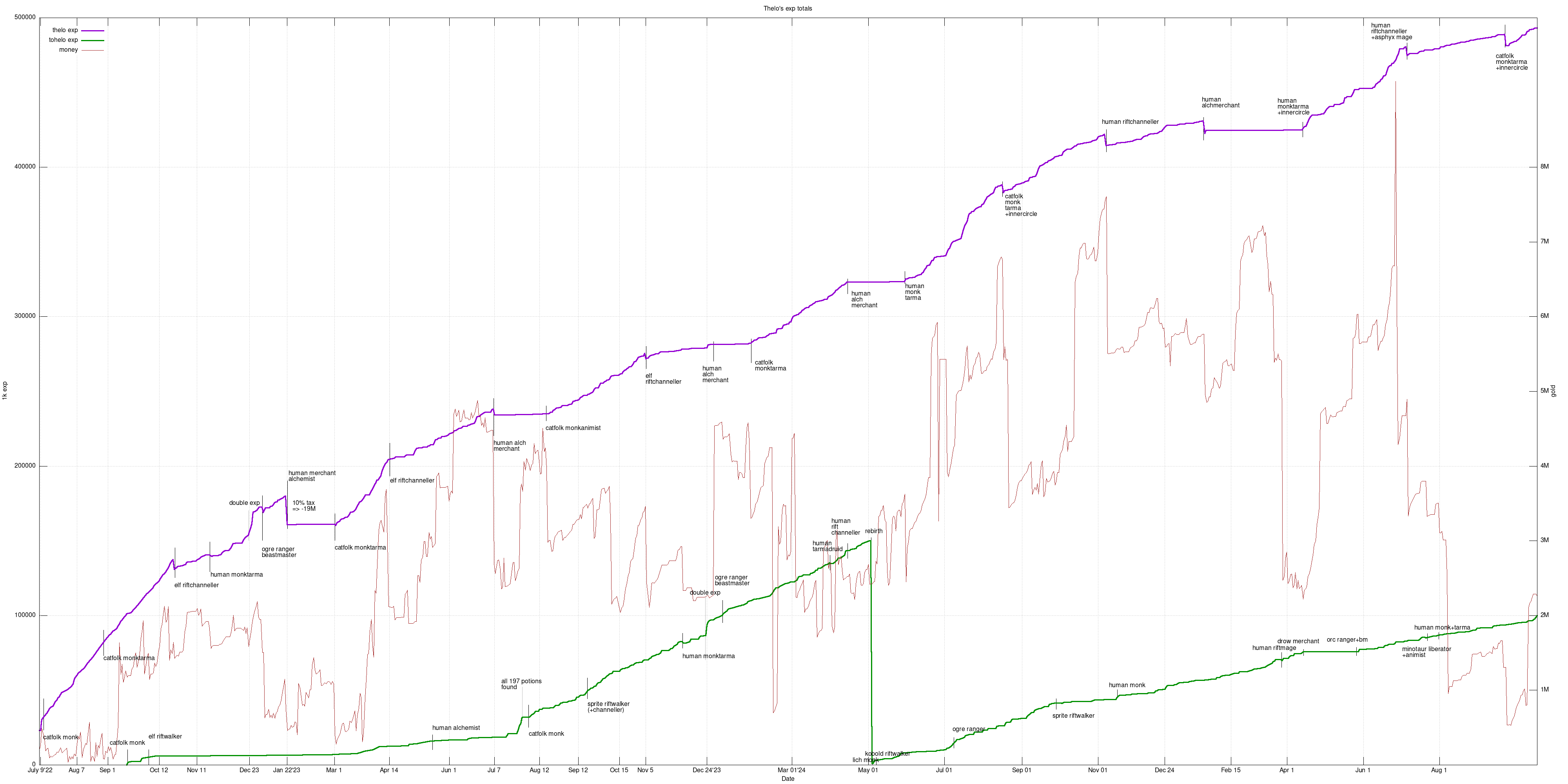 That makes about 14M exp done as monk, since I reinced to monk at 86M totals.